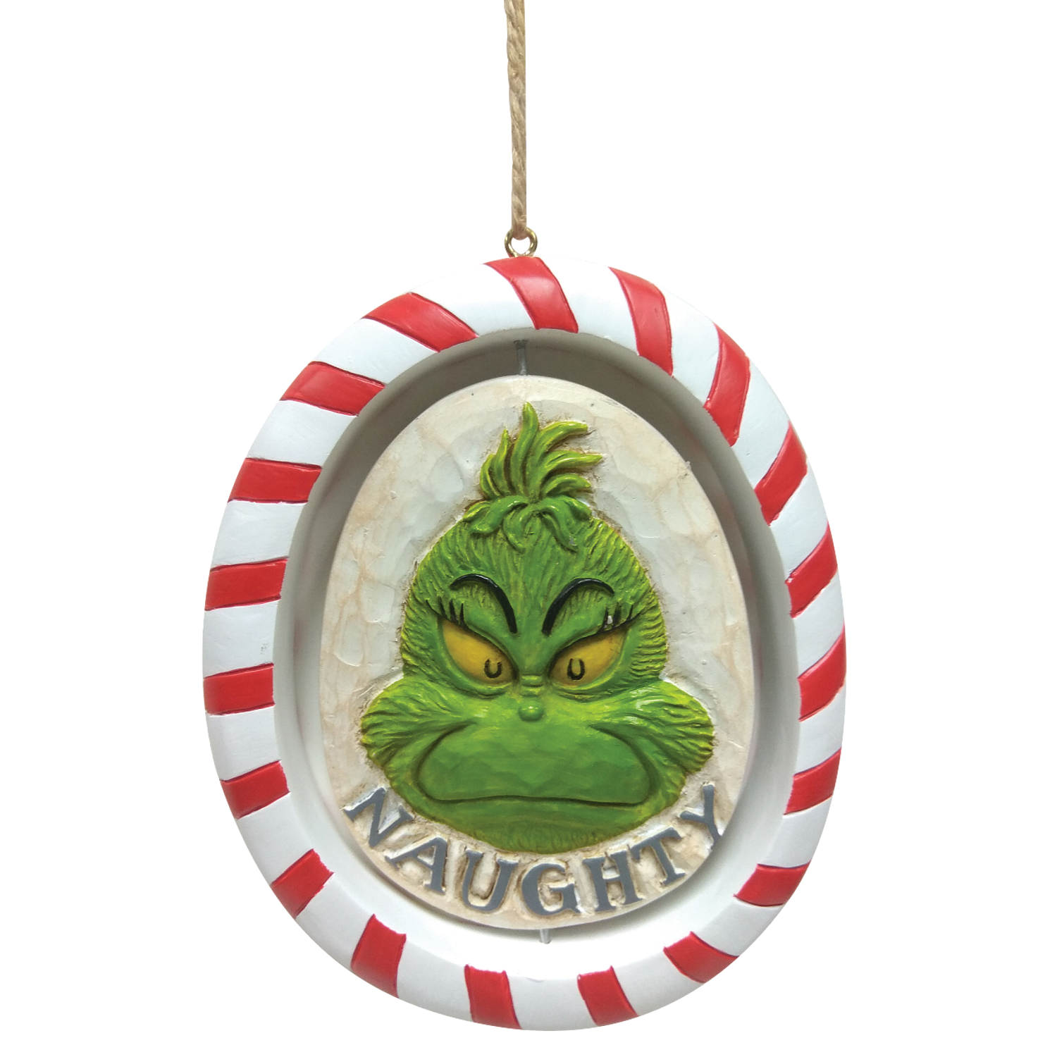 Show Santa if you deserve to be on the naughty or nice list this holiday season with this ornament! It features the Grinch with a mischievous face and naughty or a smiling face with nice underneath! The ornament is trimmed in red and white stripes! Perfect for the Grinch lover or the sweet and sour person on your list! Made Department 56. Made of pvc. Dimensions: 4.25 in H x 0.4 in W x 3.74 in. Item #: ND6010790 We are an authorized dealer for Department 56 products.