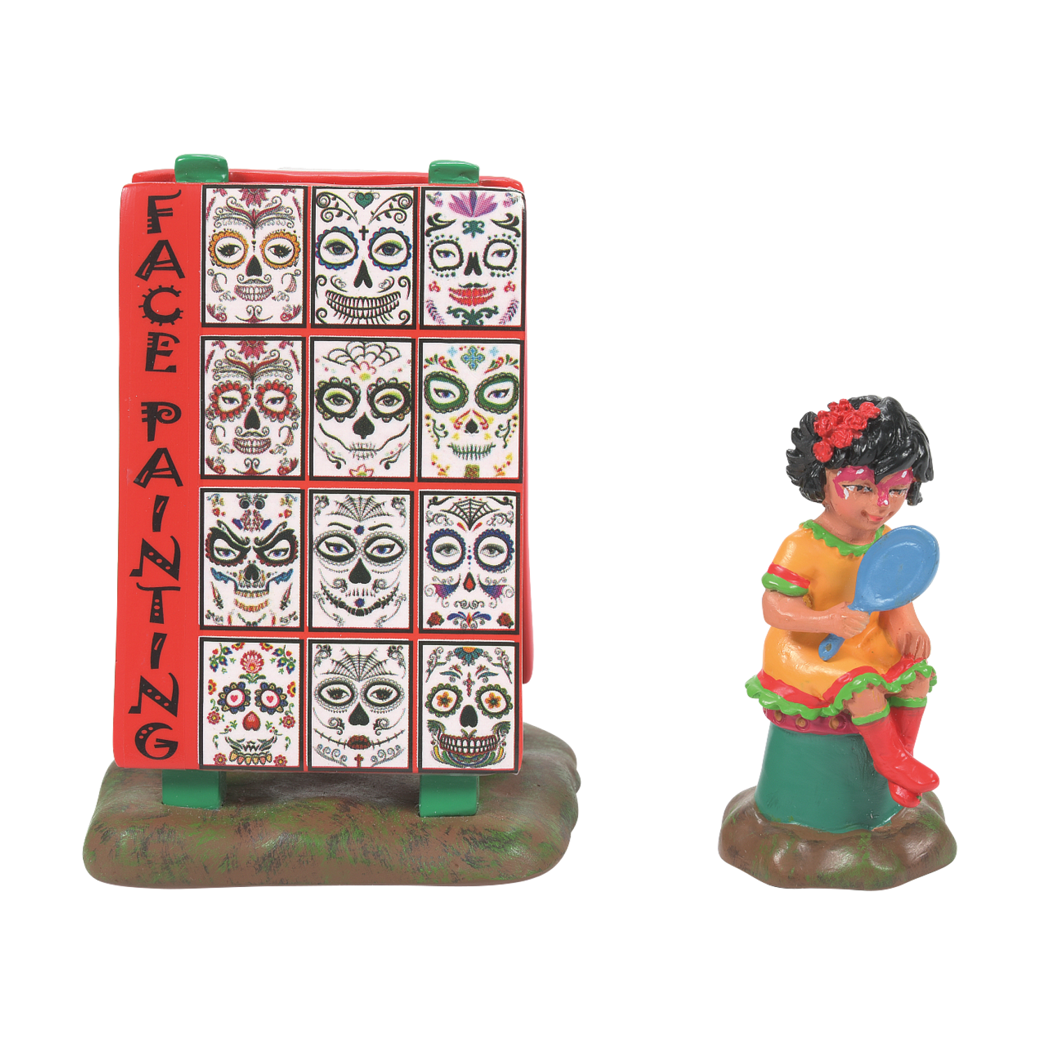 Get your face painted up for Dia de los Muertos! With a whole wall of designs to choose from, there’s something for everyone! Introduced October 2021. Made by Department 56. Made of polyresin. Dimensions: 1.88 in H x 1.1 in W x 1.1 in L. Item #: 6009838