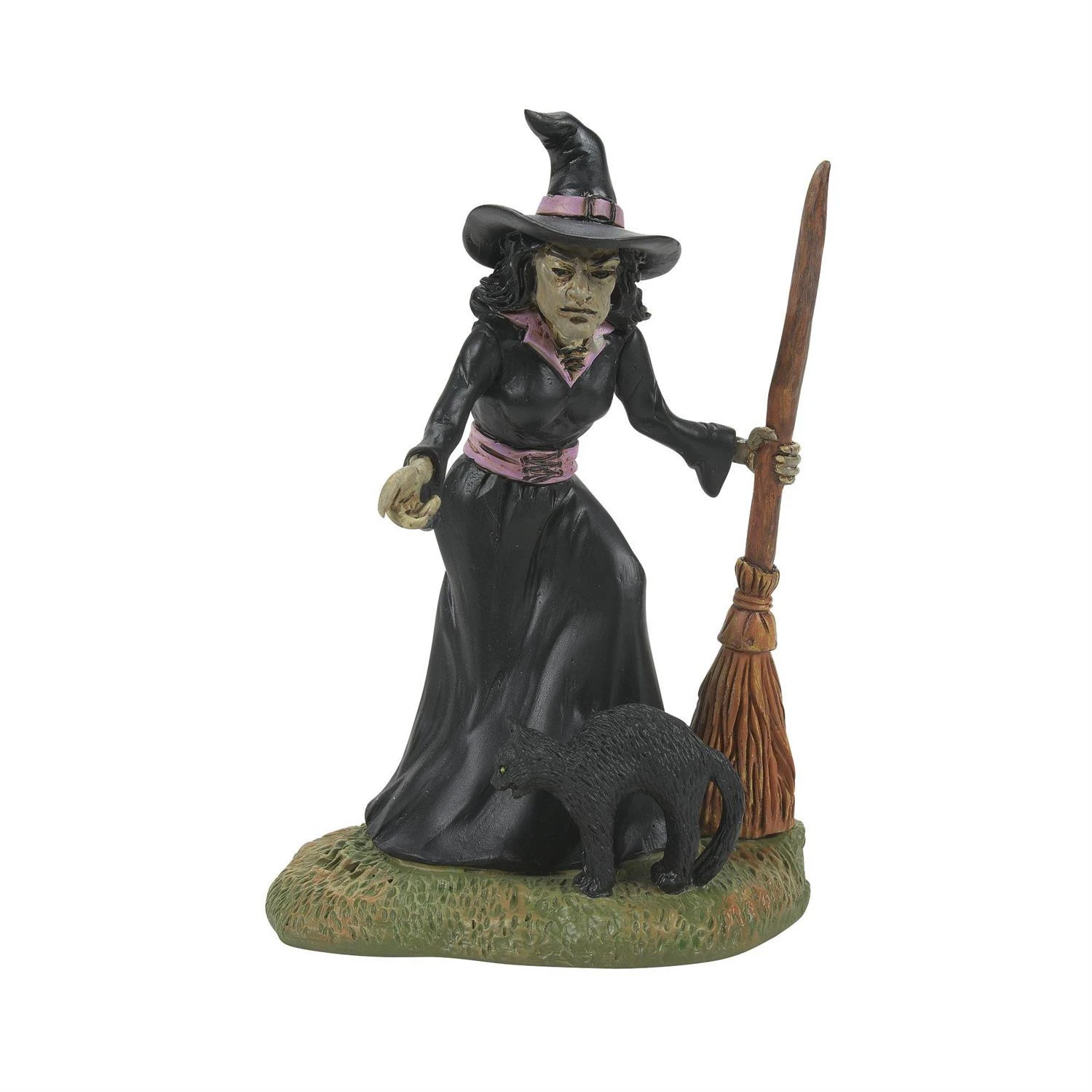 Toil, toil, cauldron bubble! This witch is dressed in her iconic black outfit and pointed witches hat with purple accents! She has a pale green face and holds her broom in hand! Introduced October 2022. Made by Department 56. Made of polyresin. Dimensions: 3.7in H x 2.15in W x 2.7in L. Item #: 6012289 We are an authorized dealer for Department 56 products.