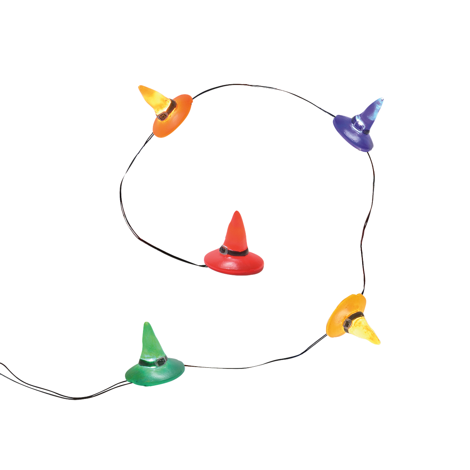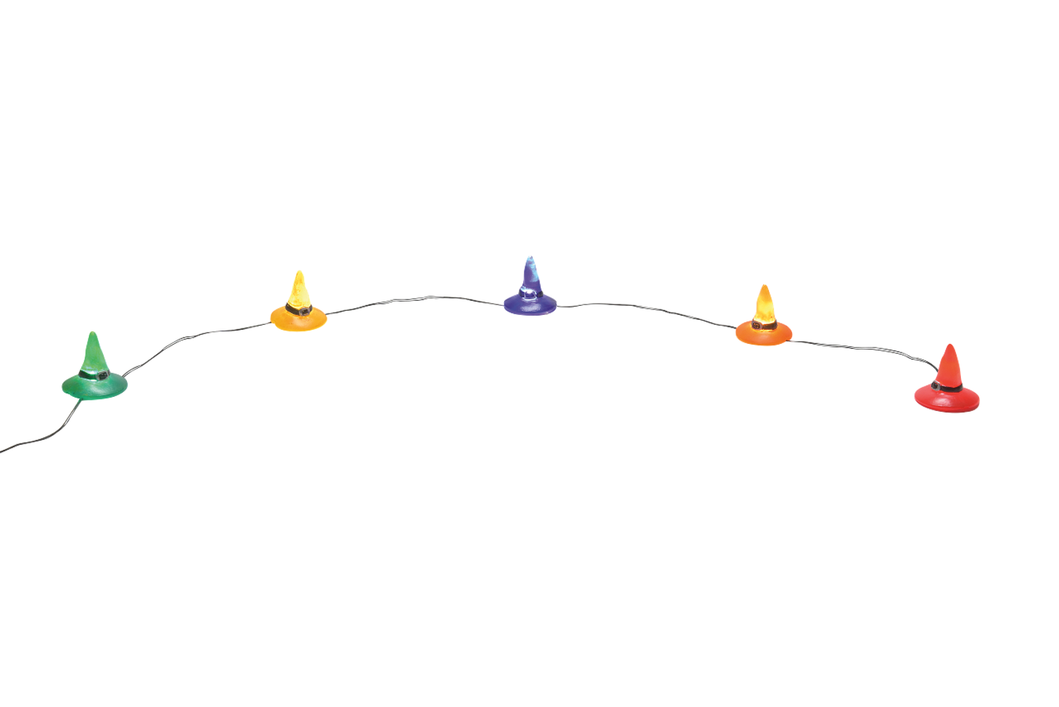 Hello my pretty! Light up your Halloween with this light strip! It features tiny witch hats in an array of bright colors! Introduced October 2021. Battery operated, requires 2 C batteries, not included. Made by Department 56. Made of plastic. Dimensions: 0.0875 in H x 0.0875 in W x 32.5 in L. Item #: 6009842