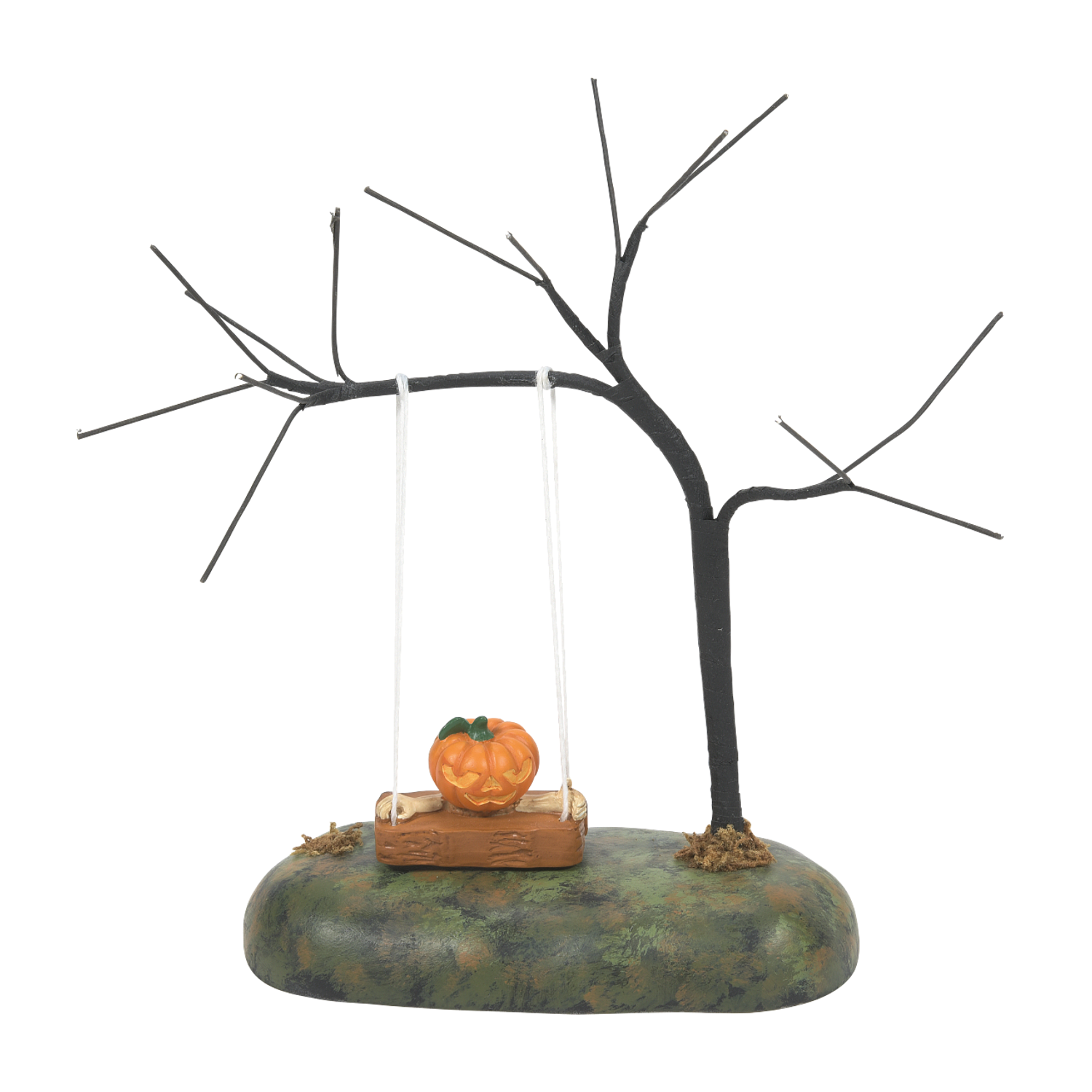 One little pumpkin sitting on a swing…. wait, that’s not how the song goes! This piece features a wonderfully carved jack o lantern sitting on a swing that swings back and forth on a black tree! Battery operated. Introduced October 2021. Made by Department 56. Made of polyresin. Dimensions: 8 in H x 3.125 in W x 8.5 in L. Item #: 6007719