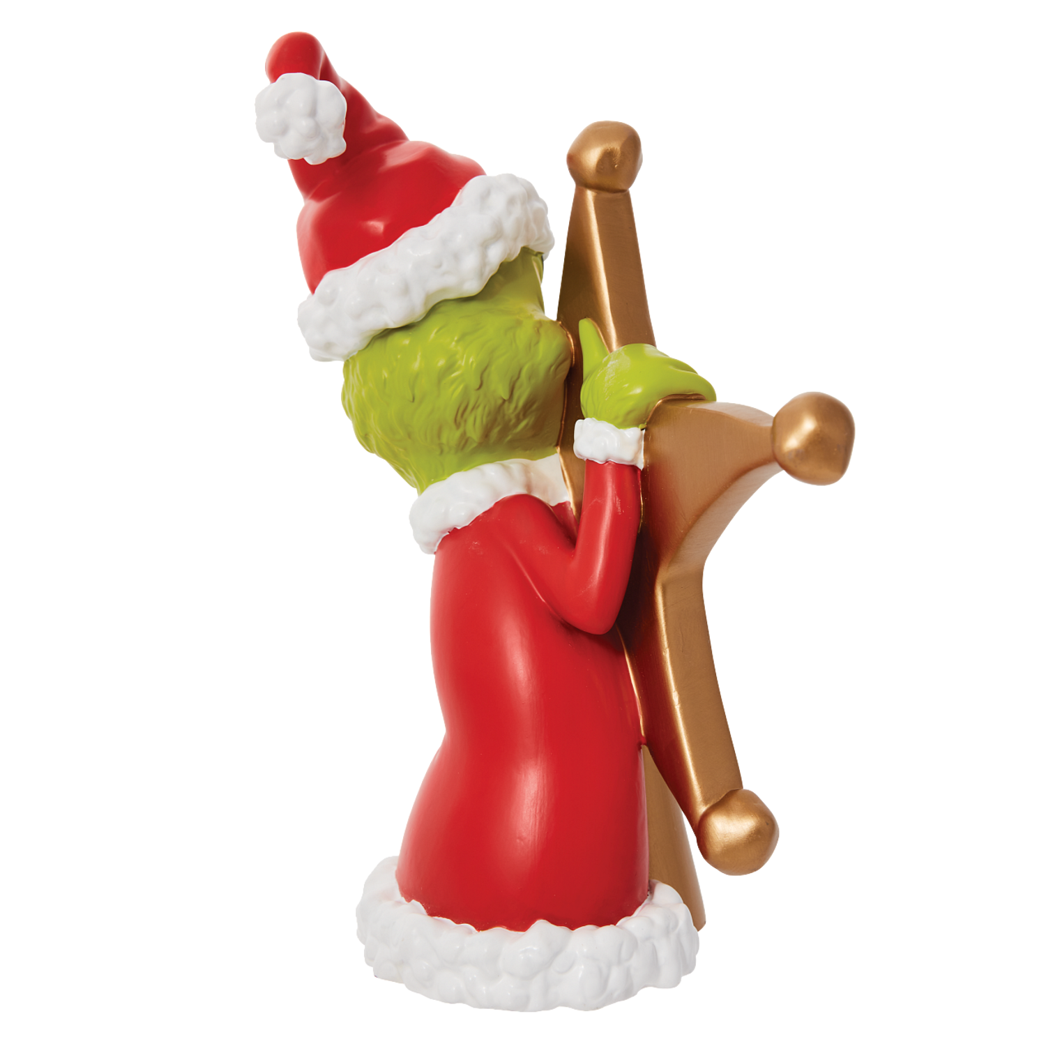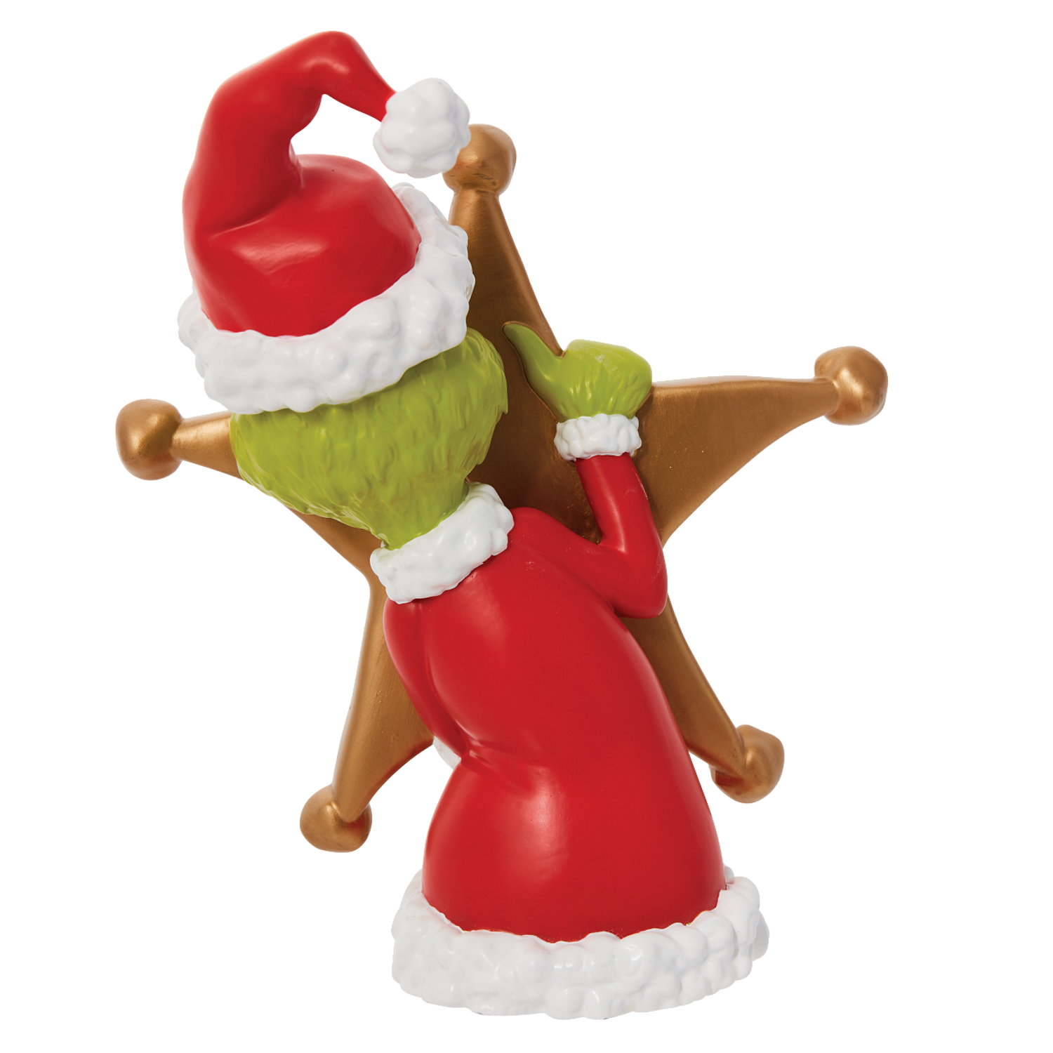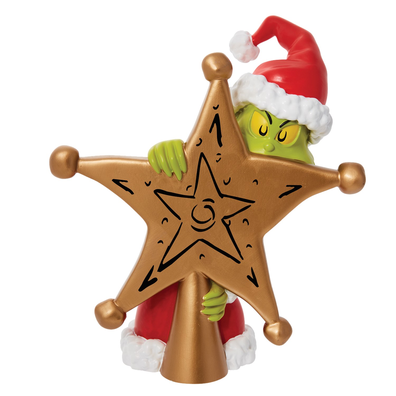 Watch out! Looks like the Grinch is stealing your topper! This fun Christmas tree topper is perfect for anyone who loves the Grinch! It features a Who-ville themed star topper that’s a little bit wonky with the Grinch in his red knock-off Santa suit peering out from behind with bright yellow eyes! Made by Department 56. Made of resin and plastic. Dimensions: 8.5 in H x 4 in W x 7.25 in L. Item #: 6010970 We are an authorized dealer for Department 56 products.